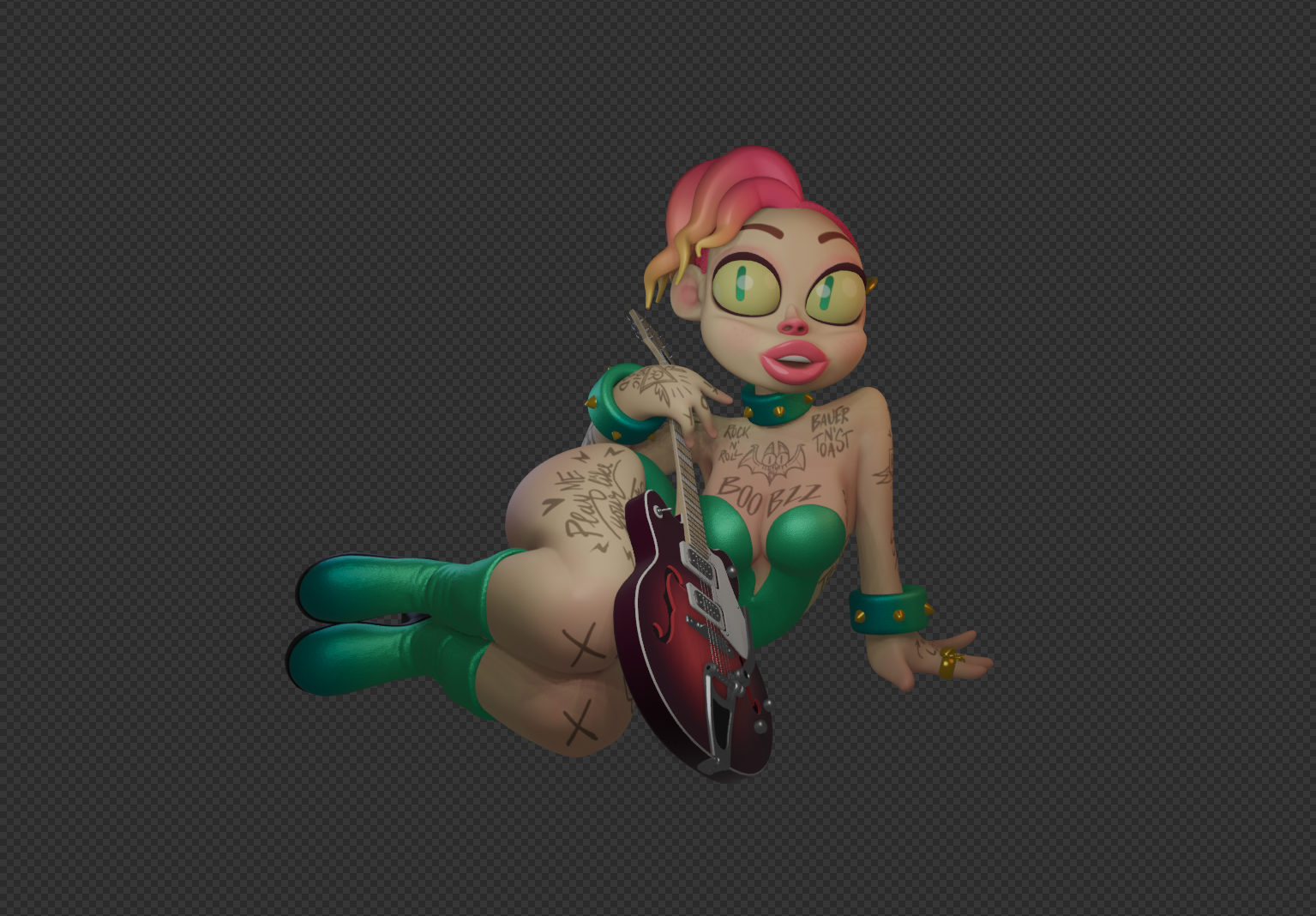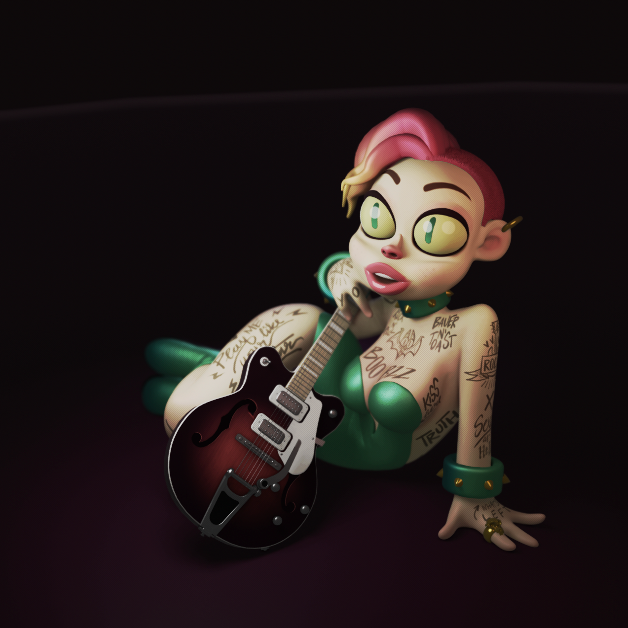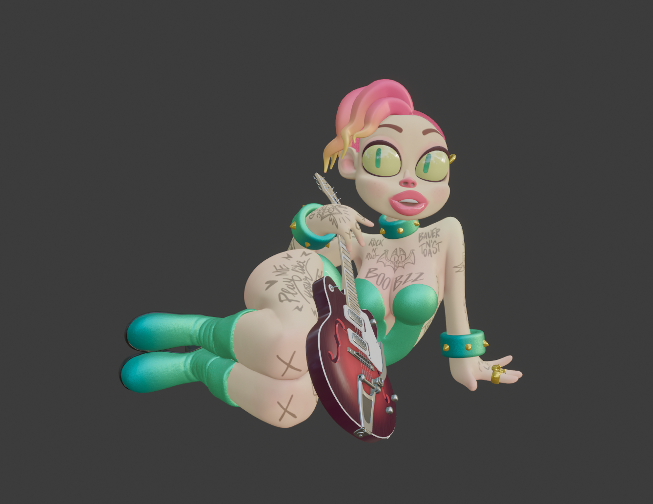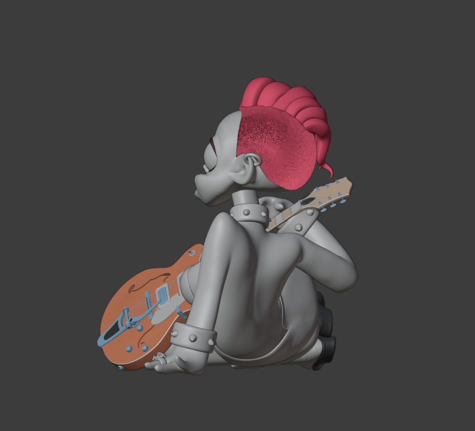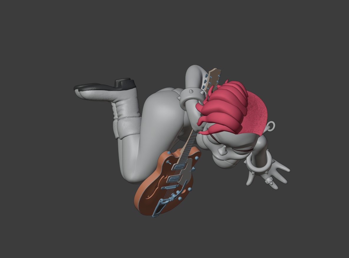 3D transposition of my 2D illustration sculpted in Blender 2.91 https://www.behance.net/gallery/34196841/Art-Guitar-Night-Poster-Illustration