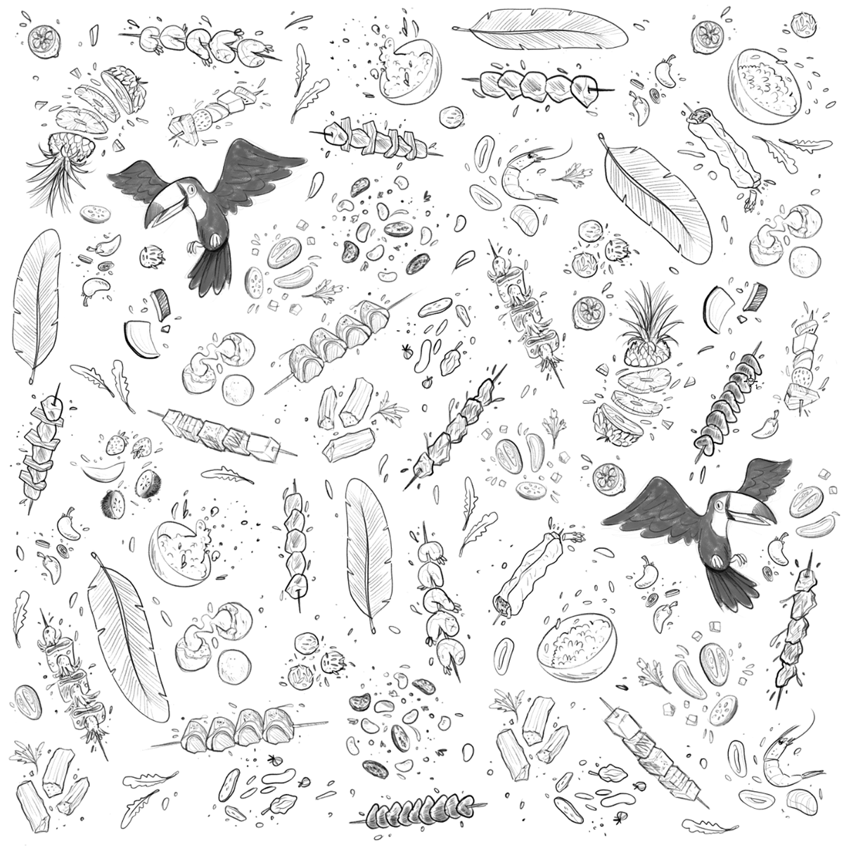 Corporate illustration and logo design for Brasilerinho - comida de rua, a Brazilian restaurant in the hearth of Milan. Art direction by Mirko Caccia