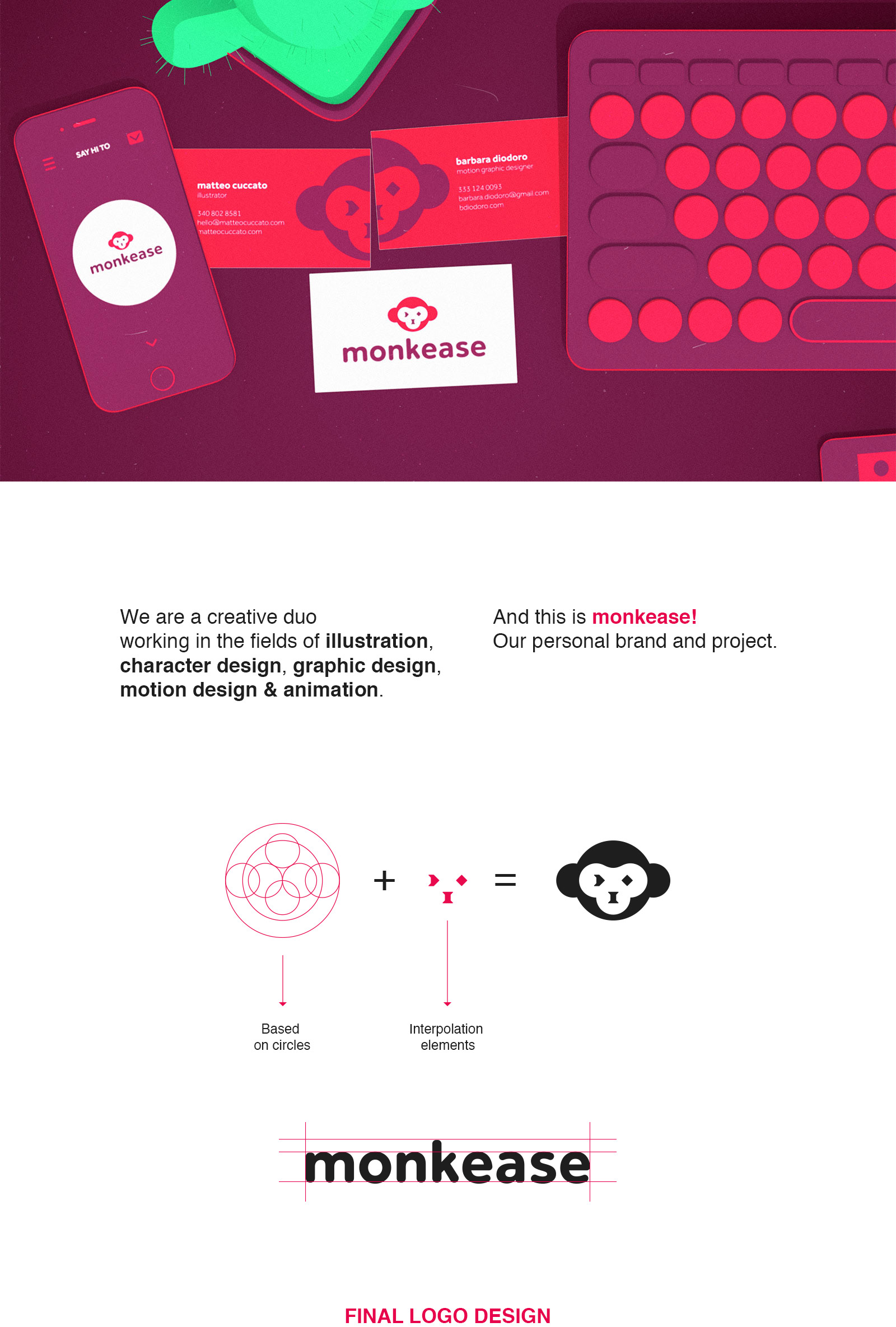 Brand design for "monkease", our illustration and animation creative studio. More info at www.monkease.it
